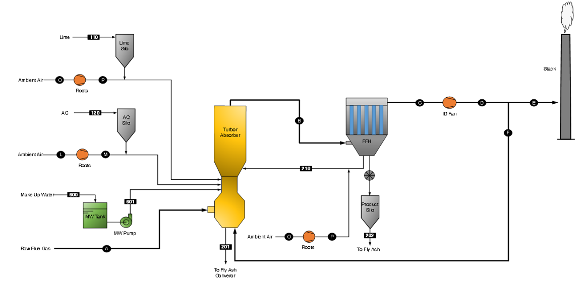 原煙氣及吸收劑經調節(jié)轉子進入反應器,反應產物由煙氣攜帶經除塵器分離,通過返料系統(tǒng)增濕后回到反應器。增濕后的粉塵、吸收劑、反應產物等在反應器內形成高濃度快速床,吸收劑表面在此不斷更新,推動脫酸反應持續(xù)進行。