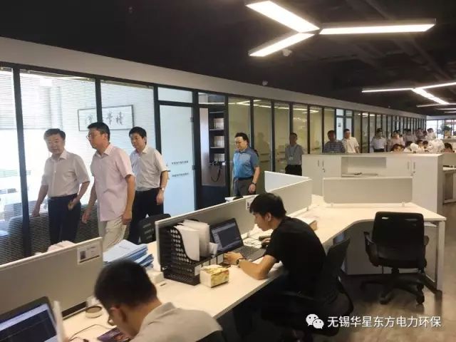 吳浩侖總經理代表無錫市華星東方電力環??萍加邢薰救w員工歡迎許書記一行的到來,對區委、開發區等各界領導的關心和厚愛表示衷心感謝!總經理陪同許書記等領導一行參觀了公司總部,通過遠程視頻系統觀看了位于無錫經濟開發區、泰州、膠州等異地工廠的現場制作情況,并介紹了企業歷程、產業結構、主營業務、工程業績分布、研發人員情況及近期規劃。