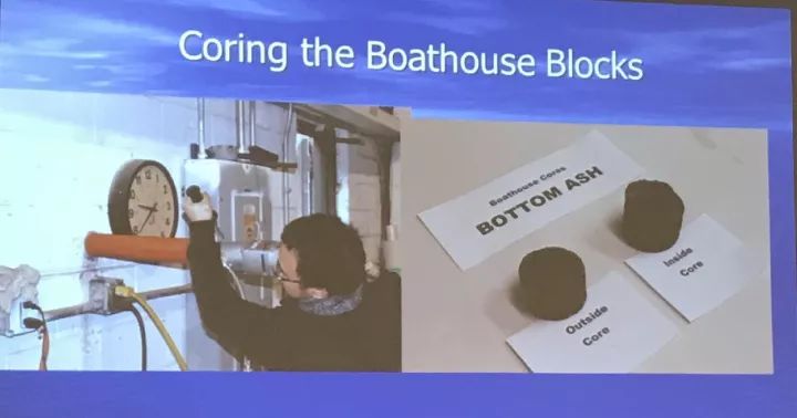 這位教授的演講題目很有趣,叫“船屋”。他講述了自己在年輕時候從垃圾焚燒廠弄回來一些垃圾灰制成的磚,用這些磚制作了一個小房間,這個小房間是用于存放他出去游玩的一艘小船的。為了檢驗這些垃圾灰是否對人存在傷害,在這個幾十年中間,這位老教授會定期從墻上取樣分析這些灰的成分變化,并將這些數據展現在我們面前。