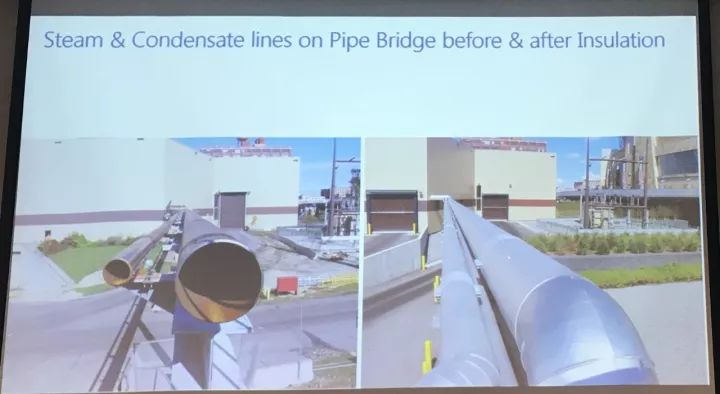 這座焚燒廠投運于2014年,裝備精良,做工精湛,其采用了空冷島的設計(與我們山西大同項目很相似),尤其是彩瓦的材質和施工質量充分體現出了一個代表美國最新工藝水平的巔峰之作。對于彩瓦的材質選擇和施工監督,一直是我們所關注的重點,對彩瓦應當嚴格要求采用連續瓦楞并確保足夠的厚度,才能體現出一個項目的質感和品質,這也是我本人最關注的環節。