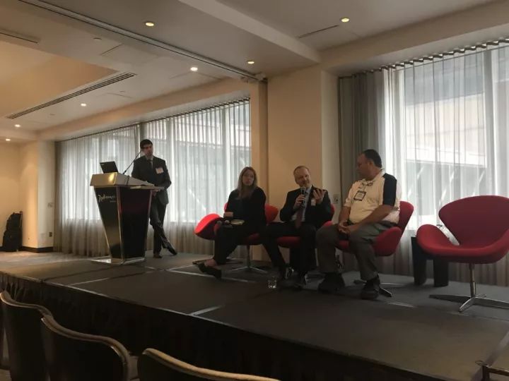 老美的會議形式我覺得比國內的會議形式略有不同。通常一個議題由一位大咖發言,同時會有3-4位大咖就坐一邊,等發言的大咖結束后,會共同探討這個話題,坐在一邊的大咖發言較為簡短,他們也會一起回復在座聽眾提出的問題。這種形式下,我認為其交互性更強一些,而分享的觀點也會持不同的見解,會帶給聽眾更多角度的思考。