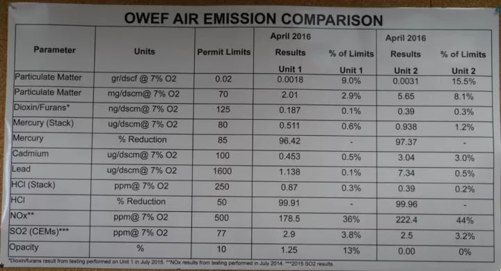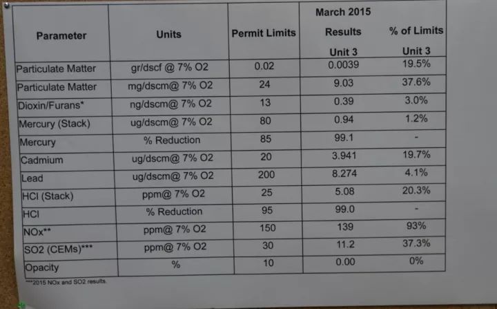參觀的同時,我們交流了一下大致的排放指標,由于時間久了具體排放限值數據記不清了,但印象中其排放指標一般,甚至高于國內現行的18485標準。回國后我查閱了相關資料,發現明尼阿波利斯的地方標準有所提高。其依據是我查閱了一個Olmsted焚燒廠3號線的環評報告,并注意到Olmsted的1.2號線的排放標準明顯寬于3號線的排放標準,有興趣的同志可以往上翻幾頁看看Olmsted廠的排放標準。