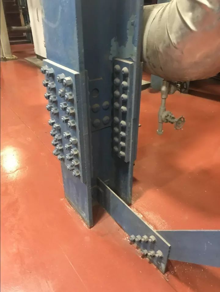 在參觀的閑暇之余,出于對鋼結構的關心,我們還看了一下他們的結構件的制作質量。老美的鋼結構清一色是高強度螺栓連接的高級貨,而我們國內大部分煙氣廠商為了控制成本,采用焊接,定位螺栓+焊接的項目則較多。