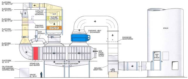 該廠主要燃料為城市生活垃圾,輔助燃料為天然氣。95MW的裝機容量,可供應55000個家庭。單臺鍋爐供熱能力為:284,400 lb/h。我們關注的煙氣區域分為2個部分,SDA+SCR。