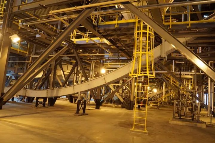 過度非常漂亮的刮板機抬升段。而更為獨特的設計是將除塵器下的2側灰斗的飛灰匯集到一根刮板機,同時與吸收塔底部排灰串聯設計,這足見其對飛灰及霧化水準的控制能力。而國內由于運行人員對設備開啟順序的不熟悉以及設備本身的不穩定,造成運行初期大量就地掏灰、排灰現象頻出,使得一些新投產項目就不得不面臨車間環境污染,導致形象受損。