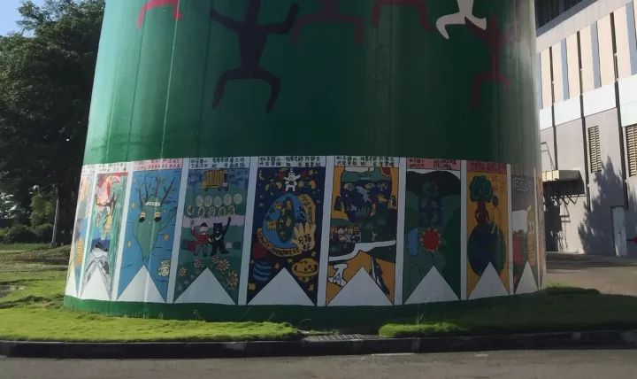 上圖為煙囪上小學生繪畫