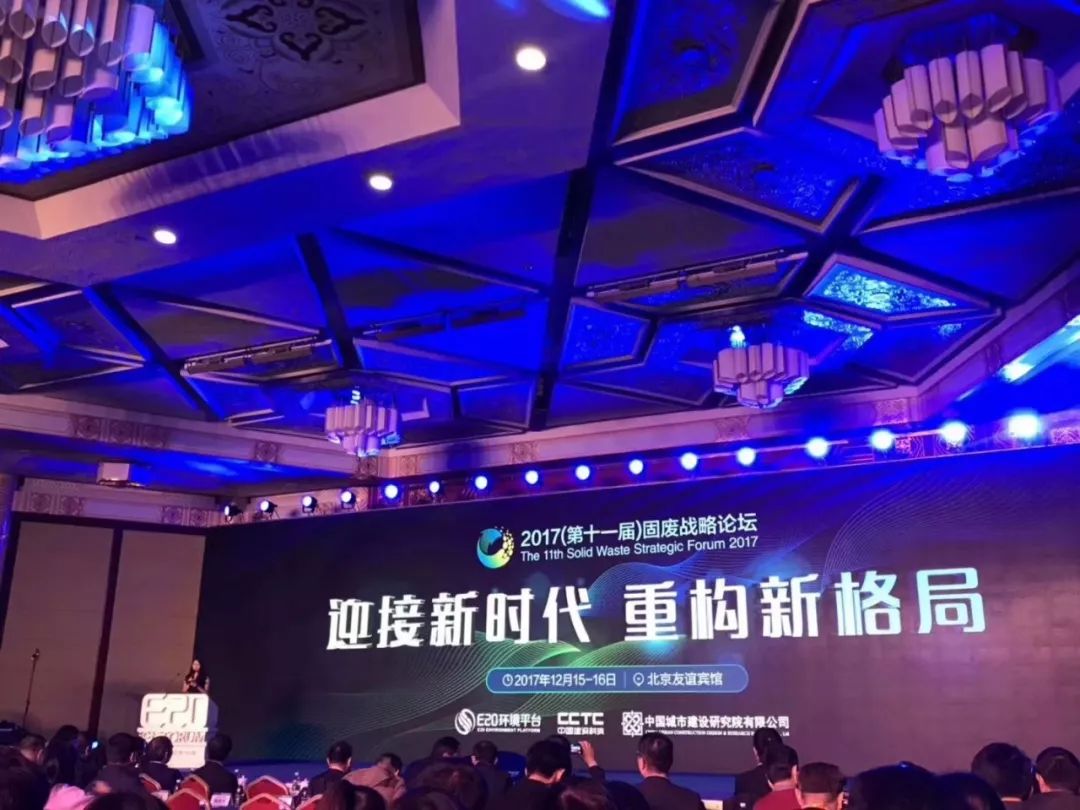 2017年12月15日,一年一度的重量級固體廢棄處理行業盛典再次舉辦,今年以“迎接新時代、重構新格局”為主題的“2017(第十一屆)固廢戰略論壇”在北京友誼飯店盛大開幕,各級政府主管部門領導、固廢領跑企業、金融機構代表、行研機構代表及媒體代表等近千人參會。