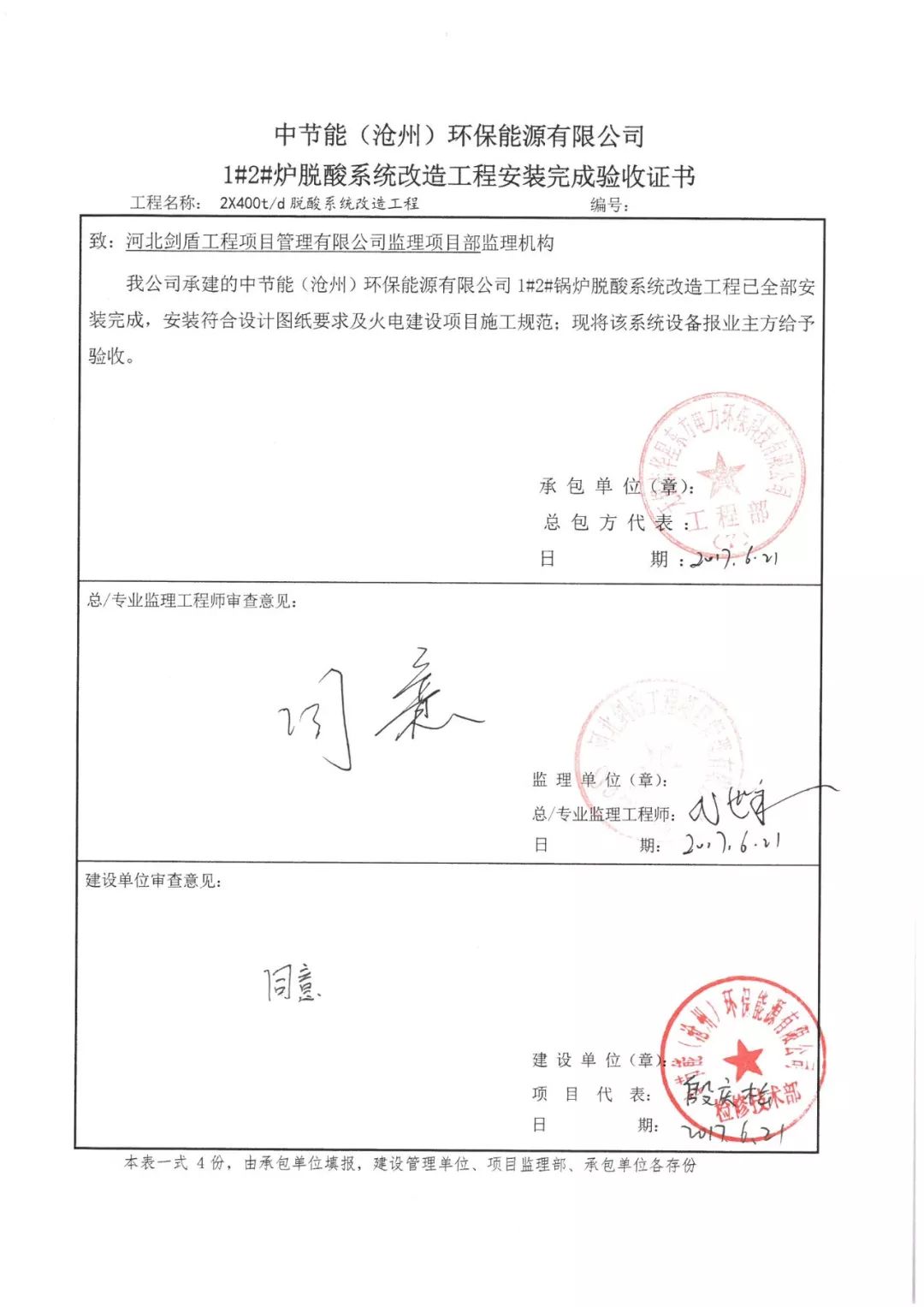 我公司中標承建的河北滄州生活垃圾焚燒發(fā)電項目2x400t/d煙氣凈化工程于2017年10月29通過72+24小時驗收,完成竣工報驗,2017年12月31日完成所有竣工手續(xù)交接,正式竣工驗收。該項目采用SDA吸收塔+石灰漿制備系統(tǒng)+飛灰輸送系統(tǒng)+SNCR系統(tǒng)等凈化工藝,現(xiàn)整個系統(tǒng)現(xiàn)運行穩(wěn)定,為我公司 EPC項目。