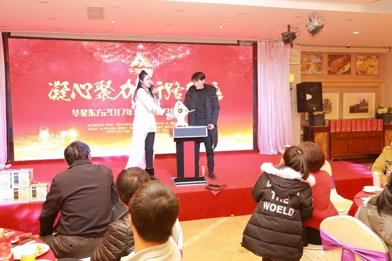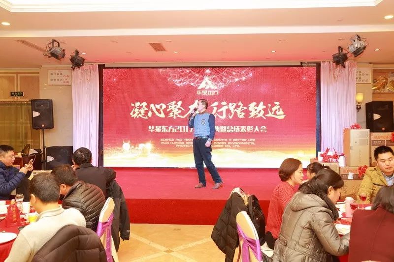 年會現場氣氛熱烈而歡快,華星東方總部、蘇州、泰州、膠州等各地分支機構及生產制造中心工作人員和代表歡聚一堂。公司總經理吳浩侖先生作了年度總結和新春致詞。在總結報告中,總經理對2017年各部門所取得的成績給予了充分肯定,在經歷了承上啟下的2016年度之后,本年度的工作依舊繁雜而忙碌,我們在環保的細分領域深耕細作,心懷夢想,不忘初心,埋頭致力于煙氣治理領域的技術開發和工程建設。報告的最后,也對新一年度的工作寄予了美好的期望和祝福。