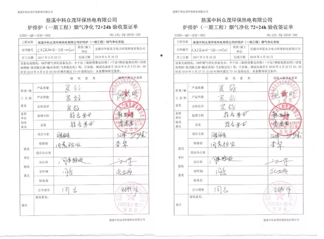 我司中標(biāo)承建的浙江慈溪生活垃圾焚燒廠3x750t/d爐排爐煙氣凈化工程,一期工程2x750t/d于2018年6月遞交竣工申請(qǐng),通過(guò)近半年的試運(yùn)行,該工程于近日通過(guò)竣工驗(yàn)收。