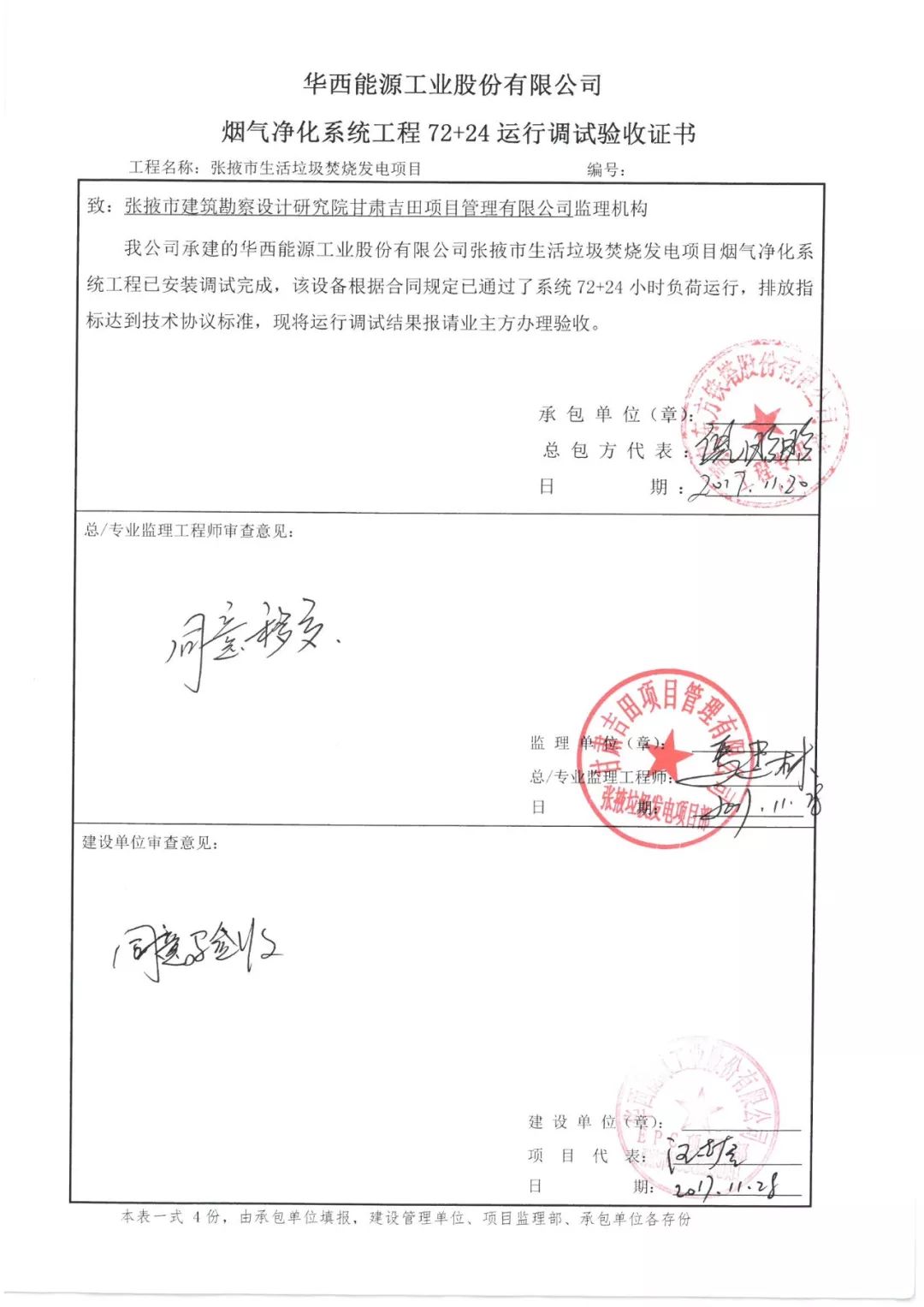 經過一年的運行,現該項目設備運行穩定,各項指標符合設計要求,其建設單位華西能源工業股份有限公司已于2018年11月20日提請環保驗收竣工公示,2018年12月通過公示,該項目現已進入正式運營軌道。