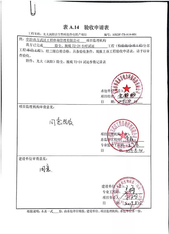 我公司承建的光大渦陽縣生物質(zhì)熱電聯(lián)產(chǎn)項(xiàng)目于2019年8月15日通過72+24小時(shí)試運(yùn)行。