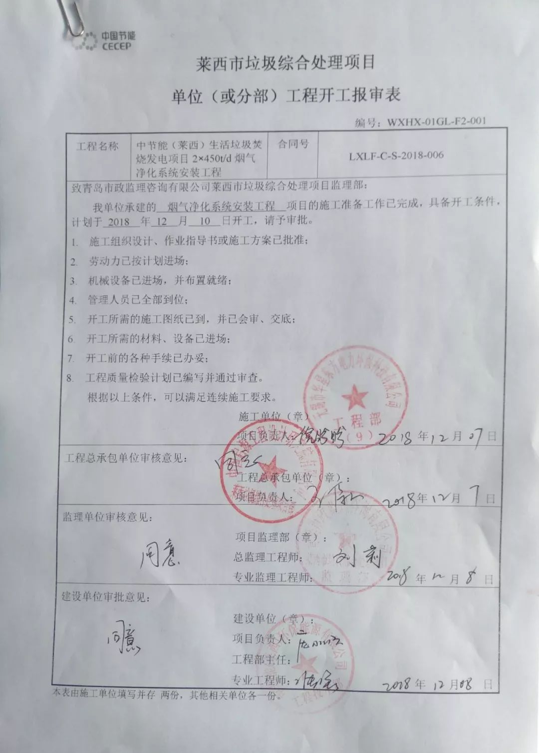 我公司承建的中節能(萊西)生活垃圾焚燒發電項目煙氣凈化工程于2018年12月10日開工,目前1號爐正在調試運行中,2號爐將于2019年11月中旬進入熱態調試。
