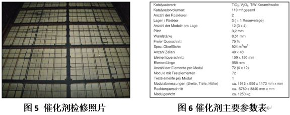 回國后,從該廠提供的催化劑檢修照片來看其運行狀態良好,詳見圖5。而其催化劑則是采用了主流的釩鈦基40孔的蜂窩式催化劑,3+1層布置方式,詳見圖6。