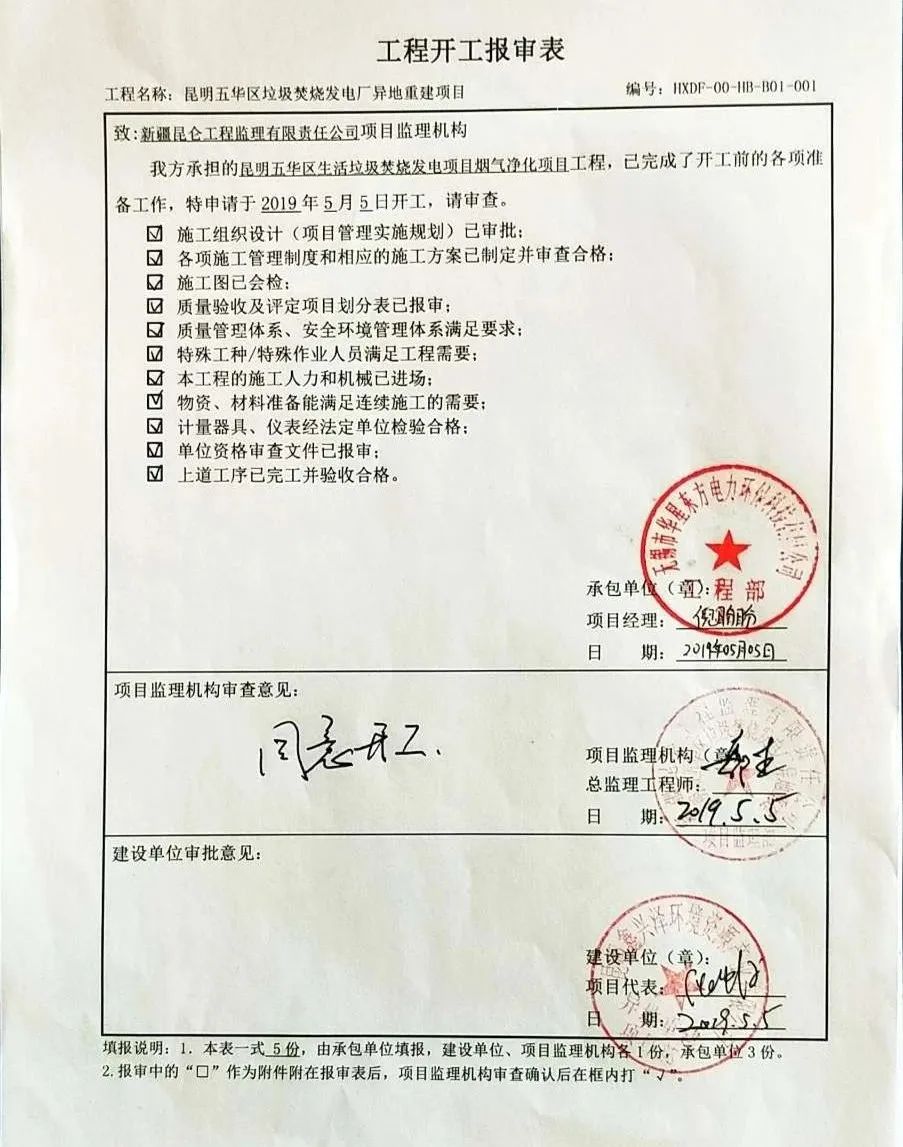 我公司承建的昆明市五華區生活垃圾焚燒發電項目煙氣凈化工程于2019年5月5日開工建設,目前完工在即,1號線和2號線已經在調試中,3號線正在施工。