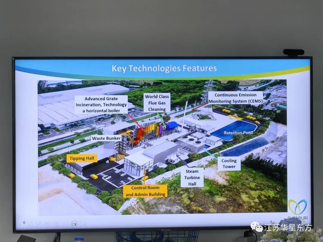 10月27日,華星東方與其他參會嘉賓一起參觀了春武里府清潔能源垃圾發電廠項目(Chonburi Clean Energy Power Plant (CCE)),該項目由WHA,Veolia, GPSC共同投資建設,總投資18億泰銖(約3.7億RMB),于2019年11月7日投入運營,建設規模為日處理垃圾320噸,年焚燒垃圾11萬噸,共發電8.63MW。