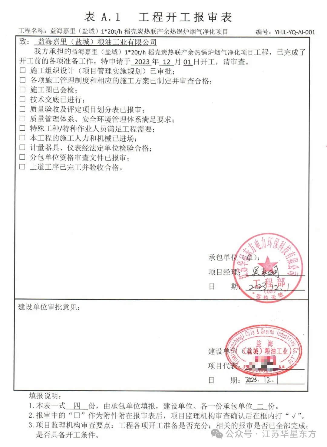 我公司承建的江蘇省鹽城益海嘉里稻殼碳熱聯產余熱鍋爐煙氣凈化項目于2023年12月01日開工建設。