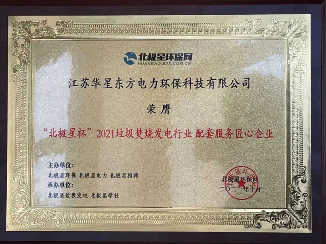 Recently, Huaxing East was awarded the "Annual Benchmark of Flue Gas Cleaning" and the "Supporting Service Ingenuity Enterprise" in the E20 environmental platform and the "Polaris Cup" annual appraisal respectively.