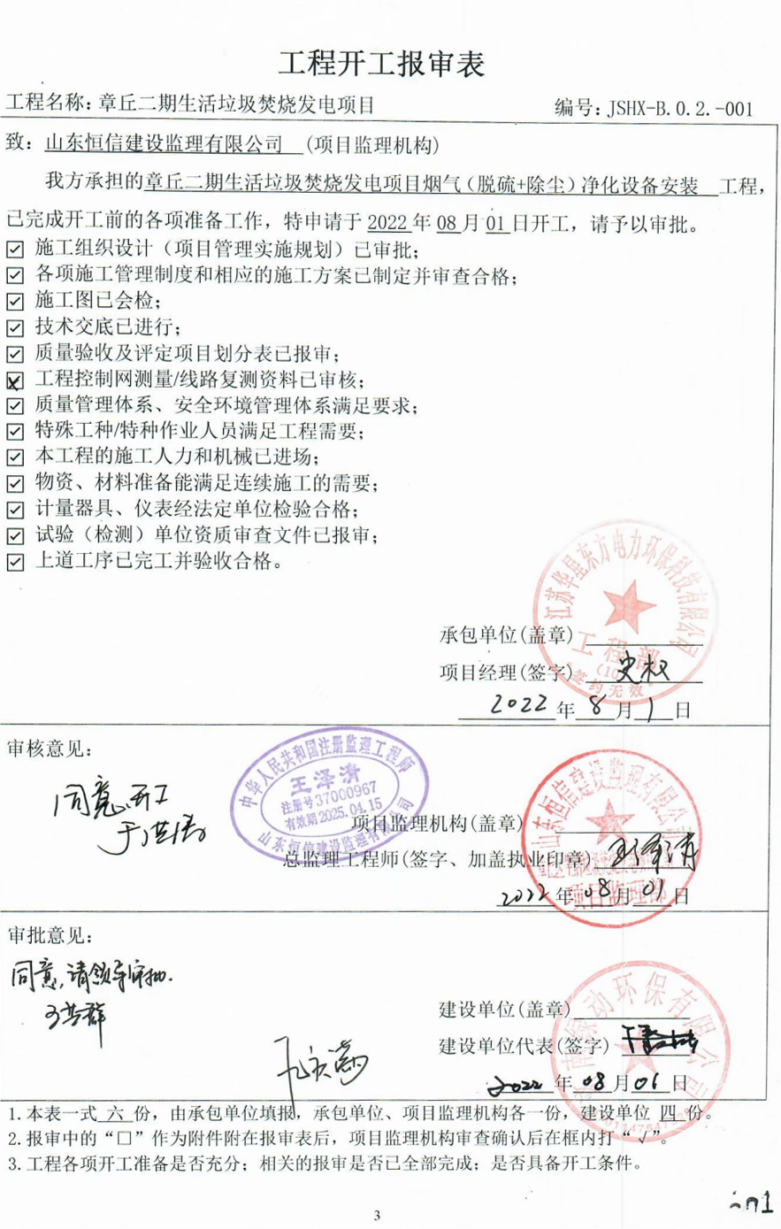 The second phase flue gas cleaning project of the Zhangqiu Domestic Waste Incineration Power Generation Project in Jinan City, Shandong Province, undertaken by our company, started construction on August 1, 2022.