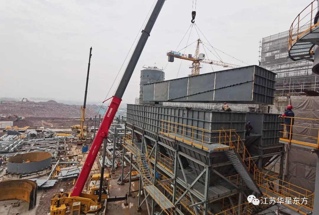 The flue gas cleaning project of the Dongqiao domestic waste incineration power generation project in Ningbo City, Zhejiang Province, undertaken by Jiangsu Huaxing East Electric Power Environmental Protection Technology Co., Ltd, has commenced the construction work of the project