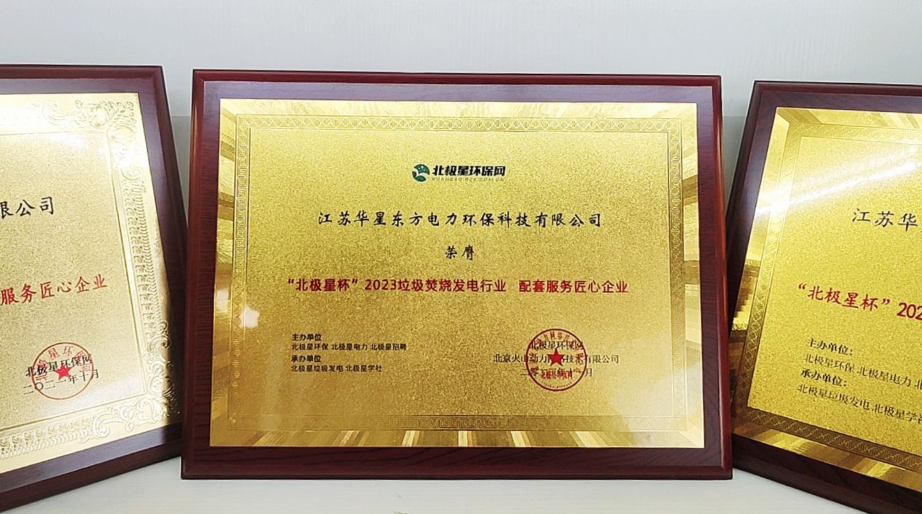 In September 2023, Jiangsu Huaxing East co.was invited to participate in the "North Star Cup" 2023 Waste to Energy Industry Selection Event. The selection activity lasted for more than a month, and after intense voting, expert evaluation, and comprehensive evaluation by the selection committee, our company finally stood out among the shortlisted enterprises. Since the first Waste incineration power generation industry selection event in 2020, Jiangsu Huaxing East has won the "Supporting Service Craftsmanship Enterprise" award for four consecutive times!