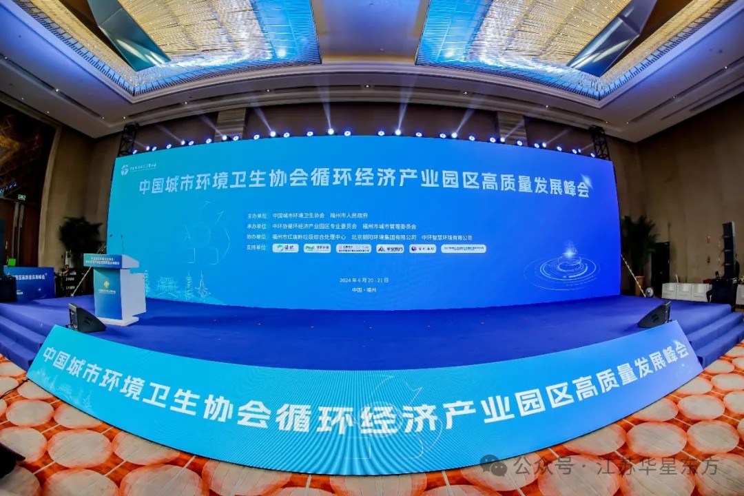On June 21, 2024, the China Urban Environmental Sanitation Association Circular Economy Industrial Park High-Quality Development Conference was held in Fuzhou, Fujian Province. The conference was hosted by the China Urban Environmental Sanitation Association and the Fuzhou Municipal People's Government, and undertaken by the China Environmental Association Circular Economy Industrial Park Professional Committee and the Fuzhou Municipal Urban Management Committee. Huaxing East Co. was invited to attend the conference as a supporting unit. More than 200 representatives from national ministries and commissions, Beijing, Fujian Province, as well as typical domestic circular economy parks, leading enterprises and scientific research institutions attended the conference.