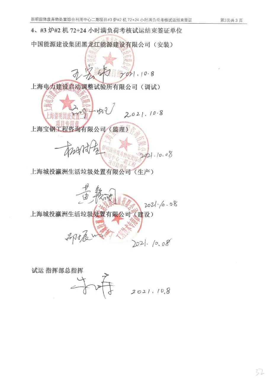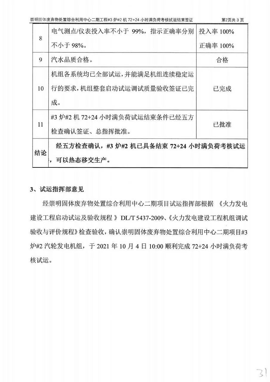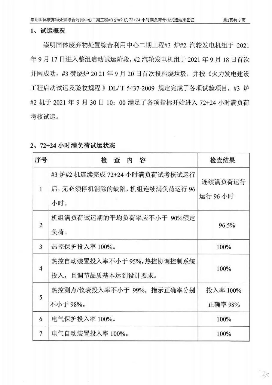 The flue gas cleaning (FGC) project undertaken by Huaxing for Chongming, Shanghai waste incineration plant Phase II passed the 72 + 24 hours trial operation on October 4, 2021.